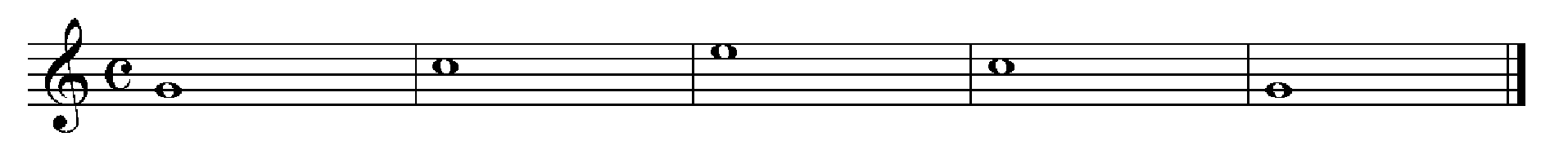 Now it's time to get bugle in hand and get ready to play some notes. The instrument is played by buzzing the lips by tightening the lips at the corners while pulling the edges of the lips back in a slightly tight smile. The mouthpiece is placed in about the center. The tongue is in position at the roof of the mouth and an air stream is started on each note. The pitch of the note is based on the speed of the air stream ("ahh" Slower, "eeee" faster). The faster the speed, the higher the note. The lips will need to tighten to support the higher notes. Try the following. The first note ("G") is probably the lowest a beginner will be able to play on a bugle. Play each note for 4 counts and give a "tuu" to start of each new count. You can take a quick deep breath in between notes if you need to.