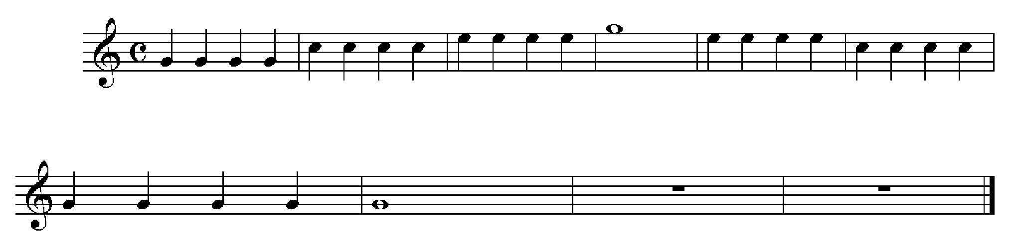 Now that you have that down, let's try shortening the time of each note, and lets add a high "G" in the middle. Each of the notes are one note except the high "G" and ending low "G" in the middle.
